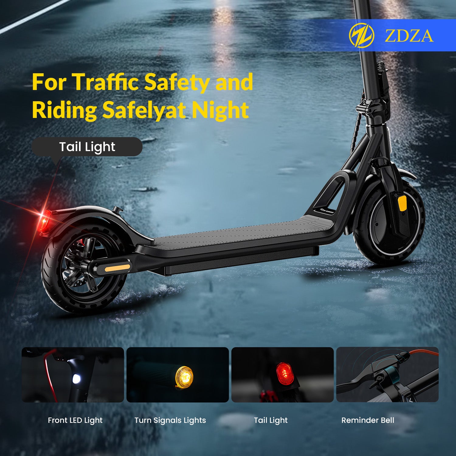 Sécurité renforcée grâce aux clignotants : la trottinette électrique pour adultes ZW02 est dotée de clignotants avancés, offrant une sécurité renforcée en indiquant clairement vos virages aux autres. Un phare avant et un feu arrière lumineux améliorent la visibilité, garantissant des trajets plus sûrs de jour comme de nuit.
