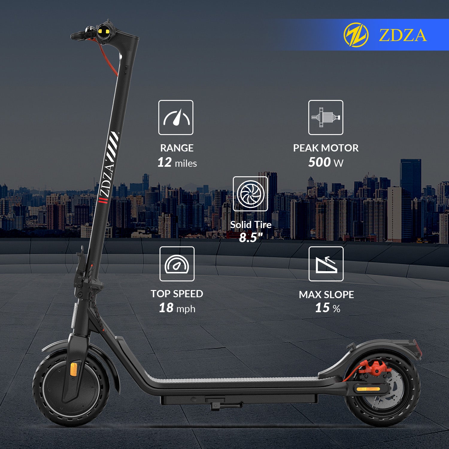 Trottinette électrique ZDZA ZW02 pour adultes et adolescents, pneu de 8,5 pouces, vitesse maximale de 18 MPH, longue portée, moteur de pointe de 500 W, double système de freinage, scooter électrique pliable portable pour la ville
