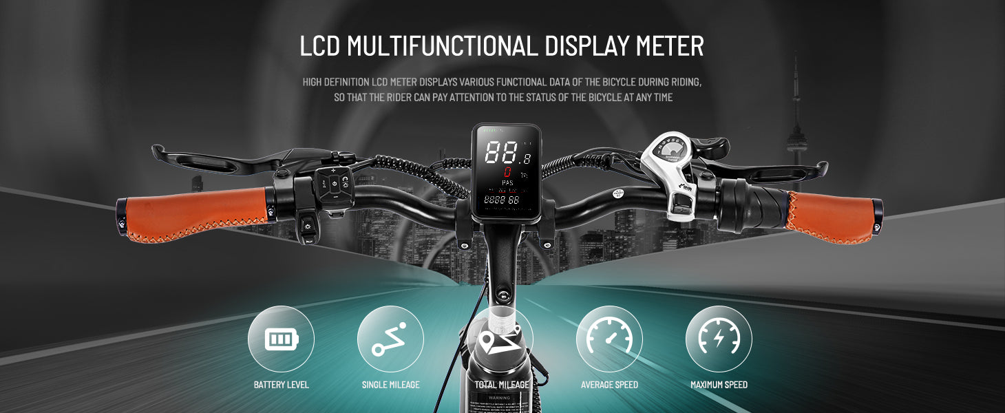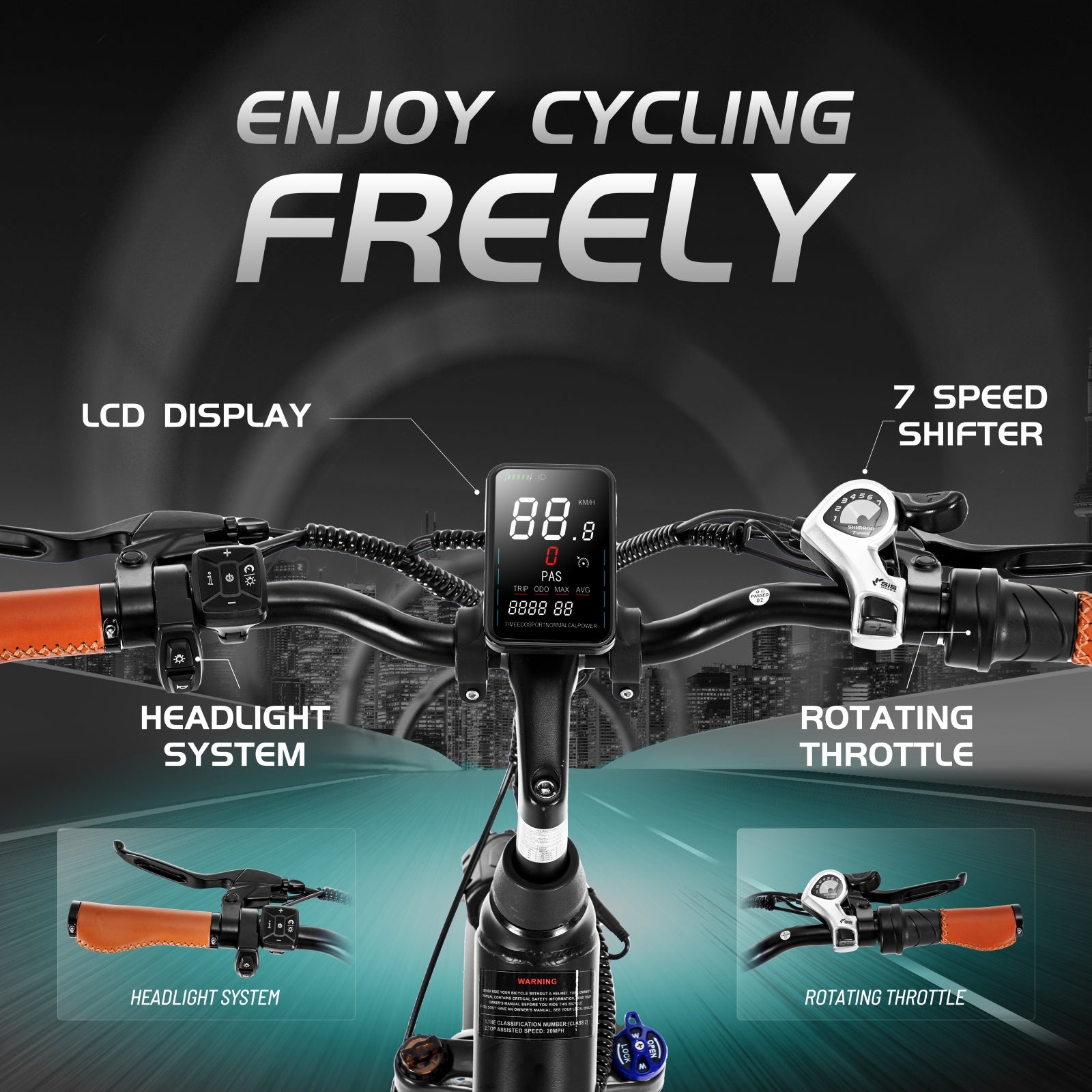 Upgraded Colorful Display - The LEO e-bike offers a personalized cycling experience with 5 riding modes, 7-speed transmission, and 5 levels of pedal assist. The upgraded colorful LCD display makes it easy to track ride data and adjust settings to suit your needs.