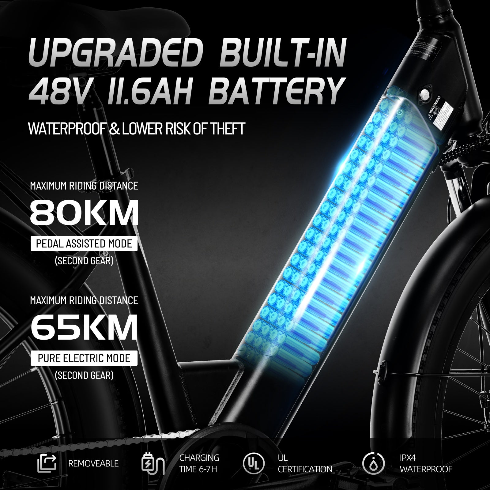UPGRADED BUILT IN 48V 11.6AH BATTERY
