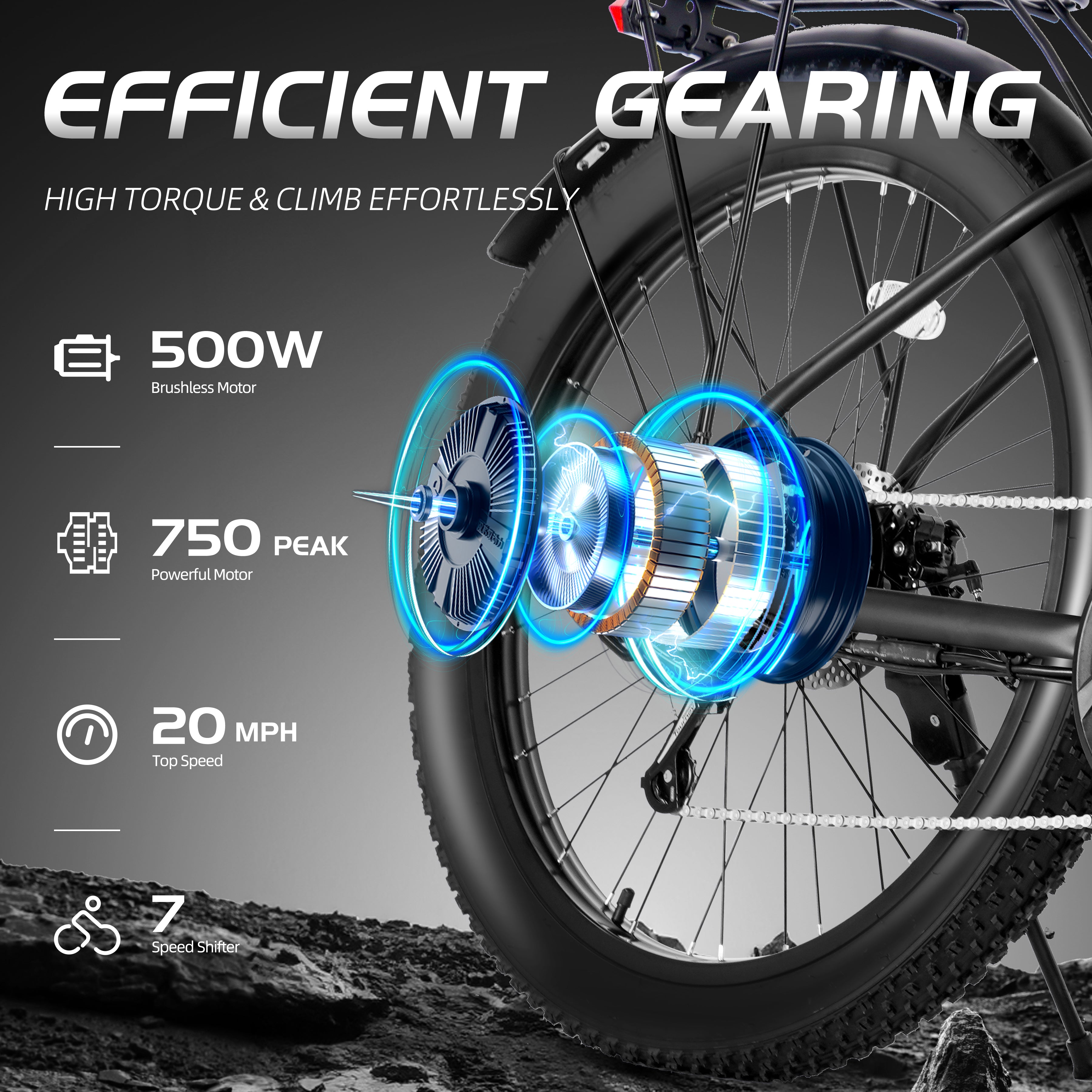 Superior Performance - The LEO electric bike is equipped with a 1000W peak power motor, allowing it to reach a top speed of 20 mph (32 km/h) and effortlessly conquer 25° slopes. Perfect for off-road adventures or daily commuting, the LEO e-bike offers a smooth and enjoyable riding experience with its 26"x3.0" fat tires. Whether for commuting or exercise, choosing the LEO e-bike is a wise decision.